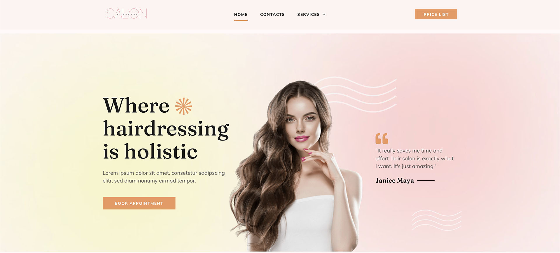 This modern hair salon website showcases services like haircuts, styling, and coloring with a focus on professionalism, experience, and client satisfaction. It features customer reviews, branch locations, pricing, and a clean design that builds trust and encourages bookings.